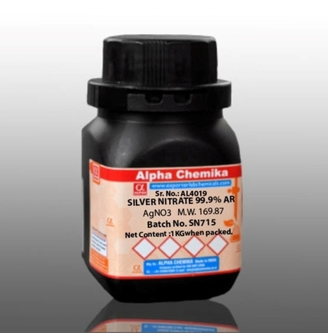 We are a leading manufacturer of pure silver nitrate which is an inorganic compound with chemical formula AgNO3. It has been used topically in medical history, manufacturing processes, biological processes, in photography and ceramica industries. It offers several other advantages as well and dissolves in various solvents, including water. Our offered silver nitrate is prepared under our professionals team in order to obtain best quality compound.